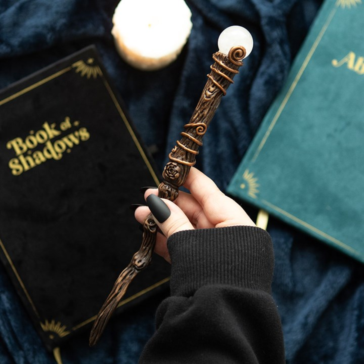 Invite positivity and clarity into your spiritual journey with this energy clearing magic wand. Completed with a genuine aura quartz crystal to enhance creativity and clarity, it features a beautiful magic wand design, perfect for energy work and intention setting. Packaged with a storage pouch in a box ready for gifting.