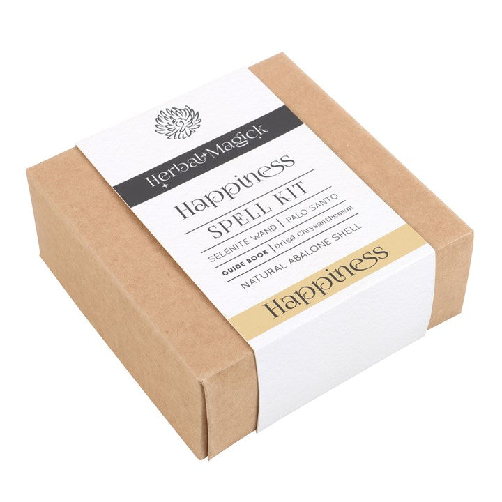 Enhance happiness and promote positive energy with this Happiness Love Spell Kit. Clear negative energies and create a harmonious environment with the selenite wand and the earthy aroma of Palo Santo. The dried sunflowers are used to radiate the energy of the sun and can be placed in the iridescent natural abalone shell which is made for holding sacred herbs. Use the guide book to learn how to perform a happiness spell or ritual. All packaged with shredded paper in a recyclable gift box for someone special on their journey to contentment. Please note that as the abalone shell is a natural product the size of the product may differ slightly from that shown in the images provided.