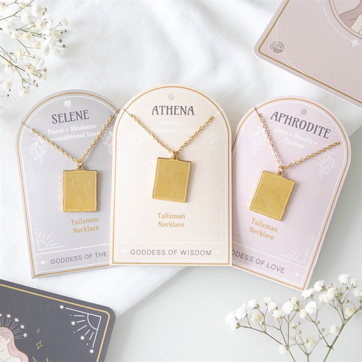 Elegant, timeless and meaningful, this set of 6 goddess energy Talisman necklaces celebrates wisdom, serenity and love. Featuring beautifully detailed gold-toned pendants inspired by the goddesses Aphrodite, Athena and Selene, these necklaces make a thoughtful gift or a personal reminder of the goddess within. Ideal as a top-up set for restocking your inventory or gifting divine energy to others. This set includes 2 x of each design, presented on matching backing cards. Nickel-free stainless steel.