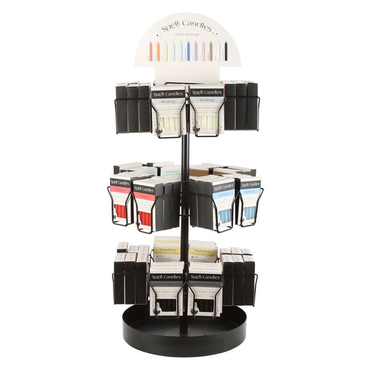 This retail display set includes 72 packs of our popular unscented spell candles in a black tabletop spinner. Eye-catching and space-saving, this display set maximises counter space while encouraging quick browsing and add-on purchases. The spinner's walled base allows for easy selling with our matching spell candle holders (sold separately), making it an efficient and attractive merchandising solution.