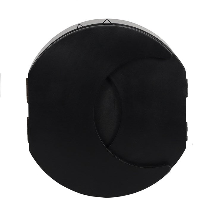 This black triple moon shelving display has the central moon as the storage area with two crescents either side which open out for display. A fantastic focal point for any room. Product Dimensions: H35cm x W90cm x D9.5cm Packaged Dimensions: H36cm x W93cm x D10cm